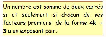 peuvent se présenter comme plusieurs fois la somme de deux carrés. La première condition: que