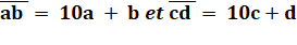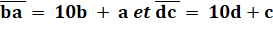 et b jusqu'à 10 puis c et d jusqu'à 100. Avec a, b, c et d différents. On reconnait la première