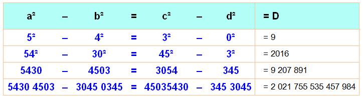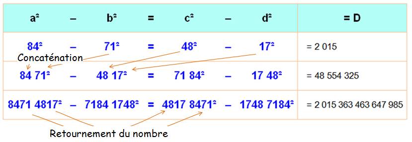 est valable pour les nouvelles différences de carrés. Attention de retourner les nombres