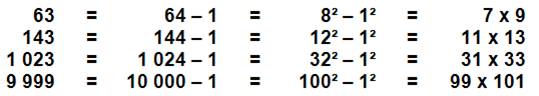 Les facteurs sont: a – 1 et a + 1 Exemples