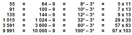 FACTORISATION des nombres différence de deux carrés Observation des nombres qui peuvent