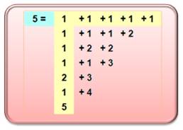 partitions d'un nombre. Avec la partition du nombre 5, on joue à réaliser