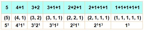 qu'une seule partition avec un seul sommant (ici, le 5) et qu'une seule