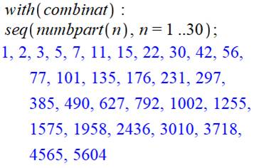 (combinatoire). L'instruction numbpart fournit immédiatement la quantité de