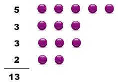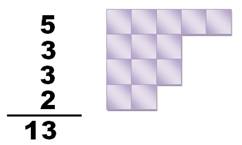 totalisée et on énonce ces totaux de chaque ligne: 5 + 3 + 3 + 2 = 13. |
