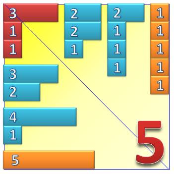 le diagramme de Ferrers du nombre 5 et observons les partitions de