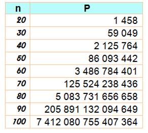 P(n) = quantité totale de partitions