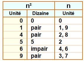 carré. Si son unité vaut 0 et sa dizaine non, ce n'est pas un carré. Si son unité vaut 5 et sa dizaine n'est pas 2, ce n'est pas un carré. Si l'unité est {1, 4 ou 9} et la dizaine est impaire, ne n'est pas un