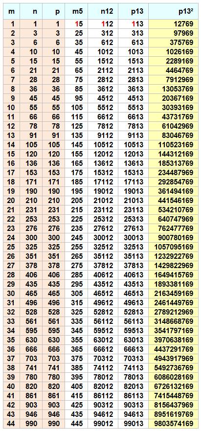 à gauche par un nombre, respectivement, m, n et p. Jusqu'à 10 000, il y a une descendance de 115