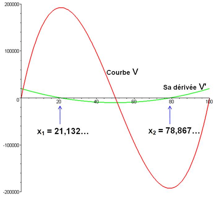 = 4x3 – 600x² + 20 000x Courbe verte: V' = 12x² – 1 200x + 20 000