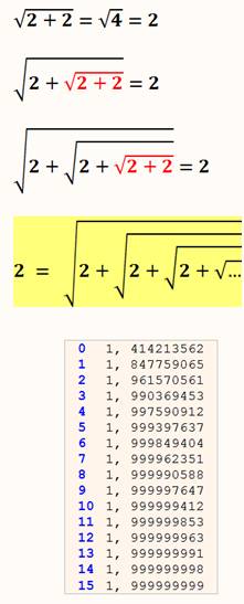 Observez ces racines de deux! Et si sous le radical nous remplacions un 2 par sa