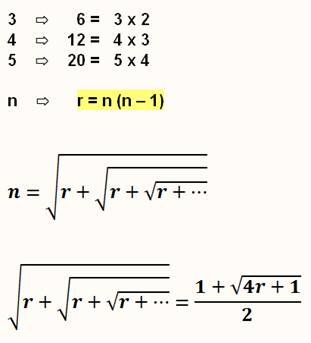 racine continue dont la valeur sous le radical est égale à n = N² - N |