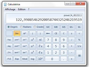 Exp(4,8211) s'obtient en tapant d'abord le nombre puis en cliquant