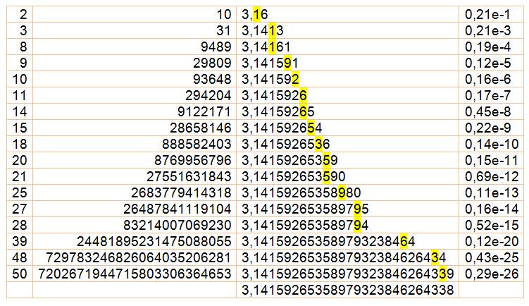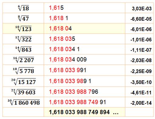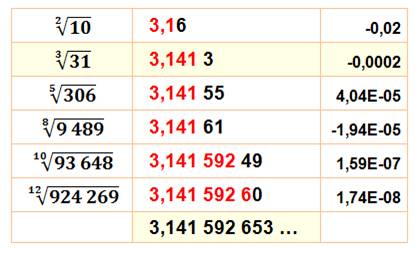 RACINES Approximations d'une constante Valeurs d'une racine énième