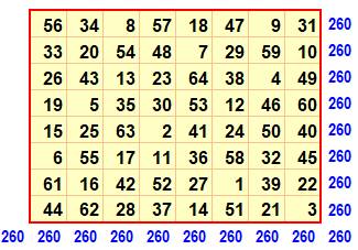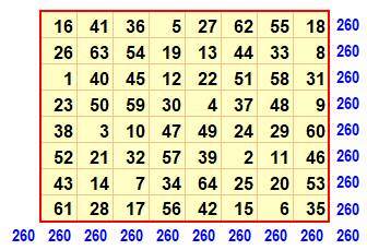 magique vaut (1/8 de la somme des nombres de 1 à 64 :
