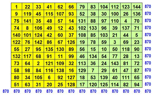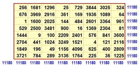 somme magique vaut (1/8 de la somme des carrés de 1 à 64):
