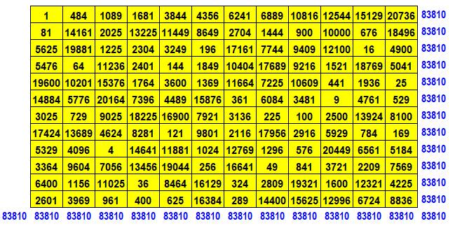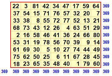 des nombres au carré a toutes ses sommes magiques. Les