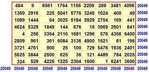 formée par les nombres originaux portés au carré, n'est pas magique a priori.