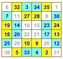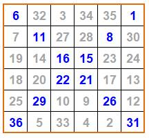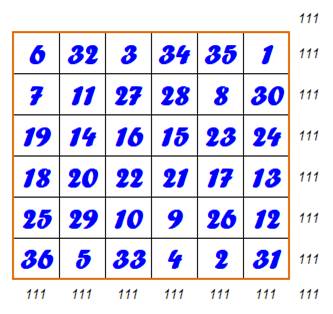 magiques habituelles, ce carré n'offre pas d'autres sommes de six cases