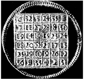 laquelle figurait ce carré magique (avec une inversion du 34 et du 24). |