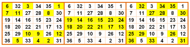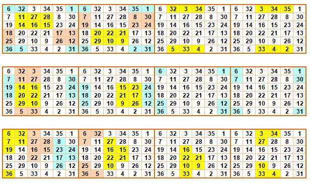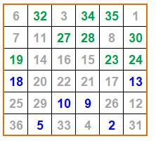 avec six nombres de 1 à 36 |