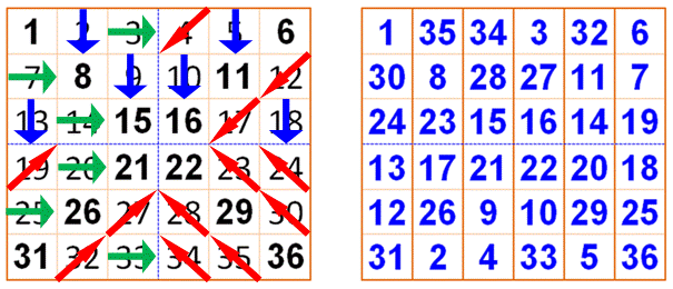 la grille dans l'ordre, les nombres des deux diagonales occupent leur place