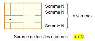x N. Somme des nombres de 1 à n²: Somme sur la ligne: N = S / n |