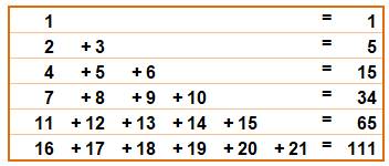 nombres en ½ n(n² + 1) sont aussi la somme d'un nombre n croissant de nombres