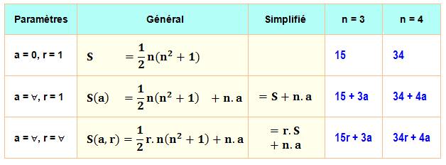somme des nombres k pour tous les k de 1 à n au carré. Petite