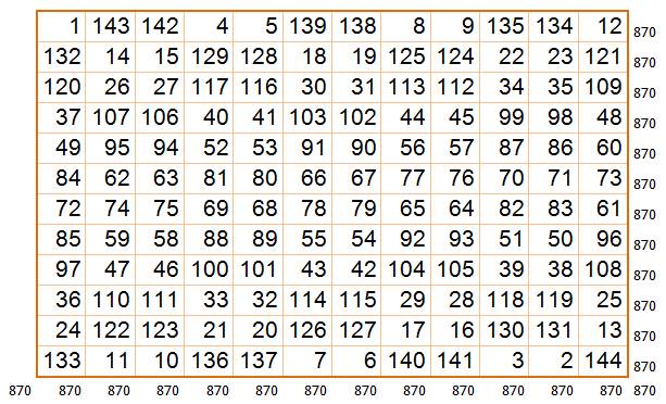 que la somme magique est aussi présente dans certaine lignes ou colonnes