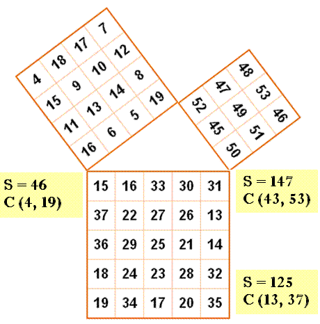 magiques selon la disposition de démonstration du théorème de Pythagore. |