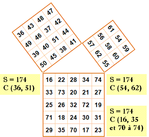 magique est unique (S = 174). Évidemment la somme de tous les nombres de ces