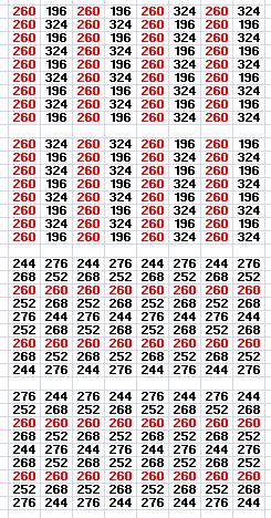Toutes les semi-diagonales en rouge les sommes 260