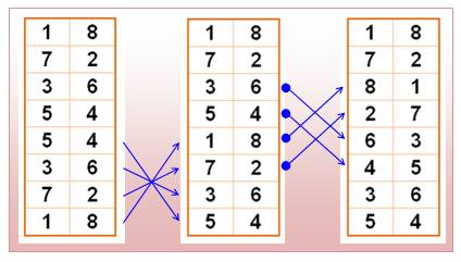 cas: une simple inversion sur le premier carré va suffire. Interversions sur les deux premières colonnes du