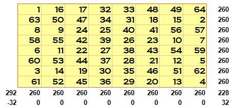 8. Le carré magique 8x8 de Benjamin Franklin
