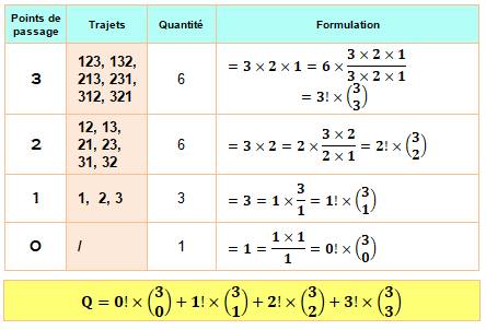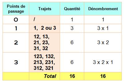 possibles et leur nombre selon la quantité de points de passage. Une idée pour le dénombrement: avec deux