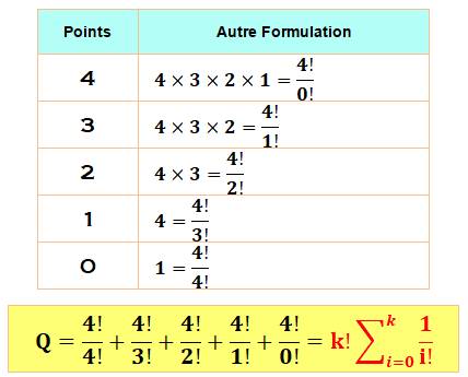 factorielle 4 qui fait apparaître la somme des