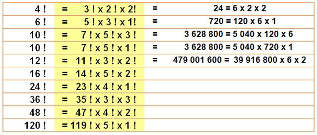 Produit de 2 factorielles: - Cas général des nombres eux-mêmes des