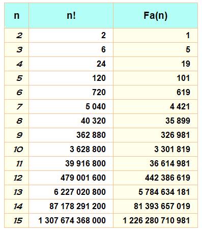 FACTORIELLE ALTERNÉE Somme alternée de factorielles. |