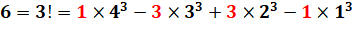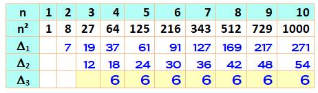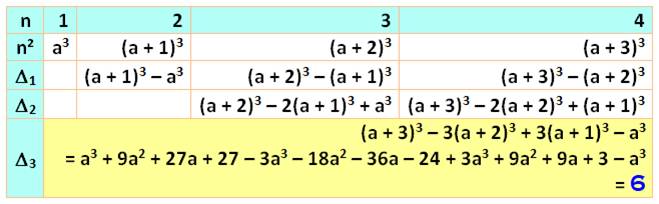 la différence troisième, la constante est égale à: 6 = 1 x 2 x 3 = 3! |