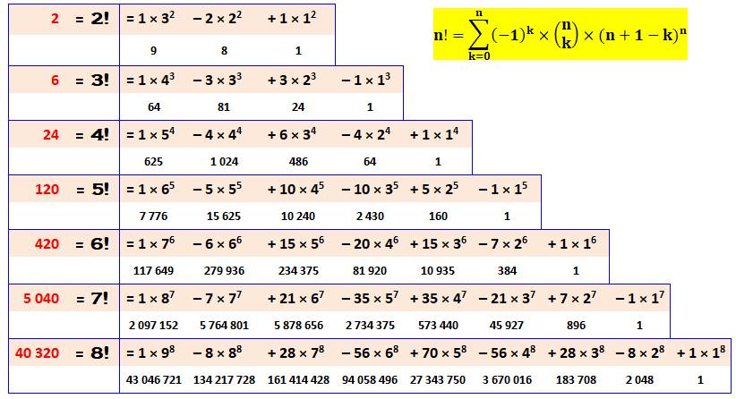 Anglais: How to express a factorial as the sum of a series? / Finite