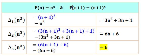 Il s'agit de montrer que: La énième différence finie des puissances énièmes est égale à