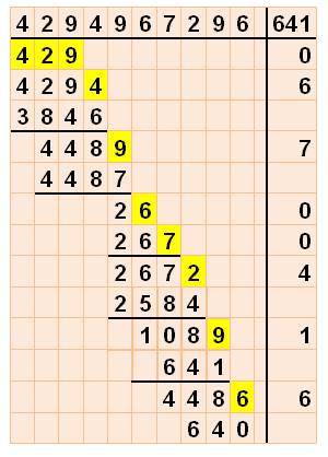 641 = 4 295 159 597 soit 1 de moins que 232. Donc: 232 Certains affirment même que le calcul de la division à la main est un