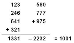 – 001 + 604 – 938 + 269 – 839 + 506 – 173 – 572 |
