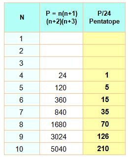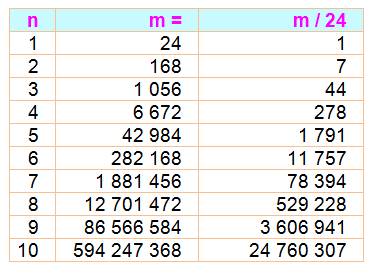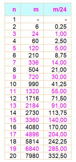 colonnes indiquent la raison Voir Factorielles tronquées / Nombres consécutifs impairs / Carré des impairs moins