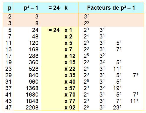 Théorème p² – q² est divisible par 24 pour tout p et q premier > 4 Démonstration