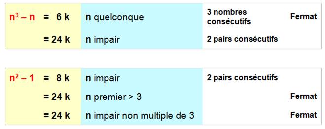 consécutifs dont le central est impair est divisible par 24. Démonstration par induction >>> |