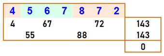 somme des blocs de trois chiffres. |