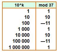 La différence des deux sommes est nulle, le nombre est divisible par 37: Restes des puissances de 10