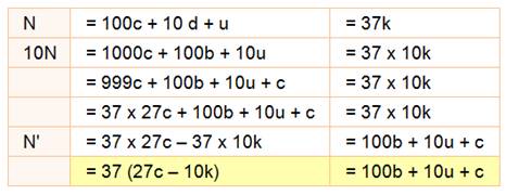 de trois chiffres et indiquons que ce nombre est divisible par 37. |